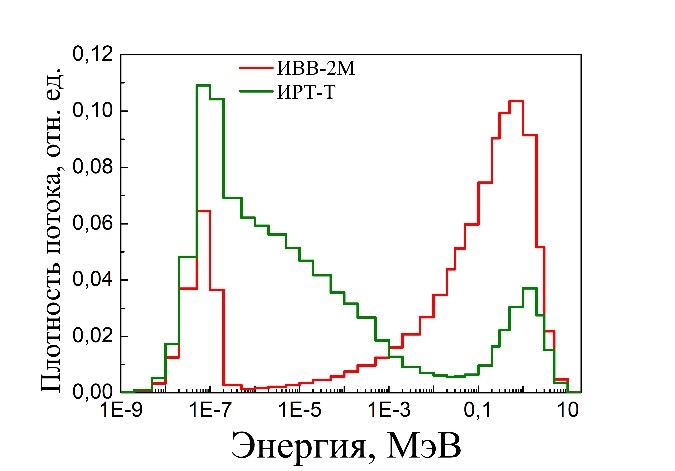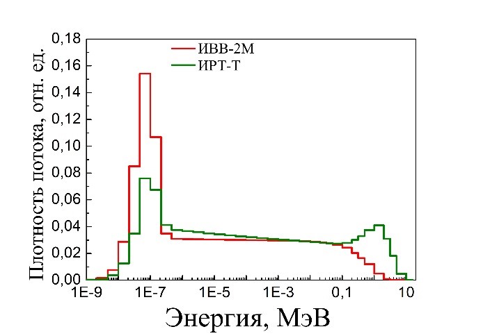 3. Характеристики нейтронных полей рабочих мест исследовательских ядерных реакторов в России. Впервые получены данные об энергетическом распределении плотности потока нейтронного излучения на реакторных установках исследовательских ядерных реакторов России. В отличие от однотипных коммерческих ядерных установок АЭС, на рабочих местах исследовательских ядерных реакторов условия облучения работников нейтронным излучением специфичны для каждого рабочего места, каждой реакторной установки. Для совершенствования систем индивидуального дозиметрического контроля нейтронного облучения на этом классе реакторных установок необходимо проведение комплексных экспериментальных исследований характеристик нейтронных полей на каждом рабочем месте, где происходит воздействие нейтронов на персонал.