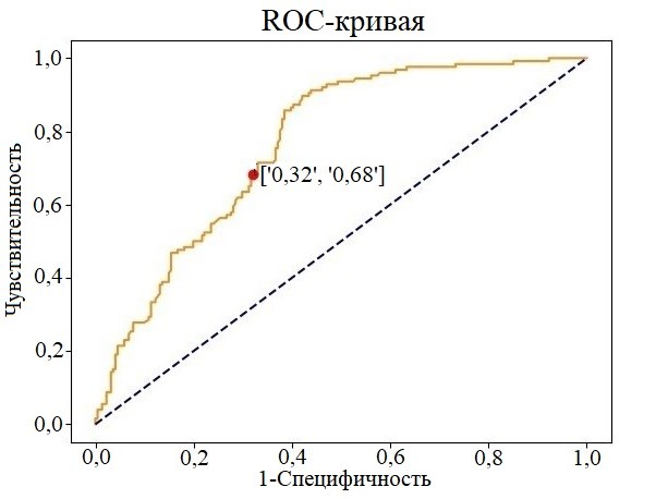 Рис. В разработанной программе для ЭВМ реализована процедура ROC-анализа с функцией визуализации порогового значения, используемого в качестве диагностического критерия.